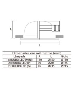 Disponível em 3 tamanhos, variável de acordo com Lâmpada solicitada.*